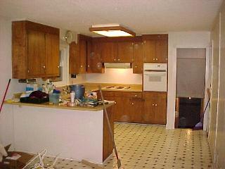 The most obvious change is that the cabinets are now white. I also have a new light, cook top, range hood, sink and crown molding. I switched all of the cabinet hardware to brushed nickle and I installed a door to close off the basement. Although you can't tell from these images, the ceiling was textured but is now smooth. The floor is the same. It just looks yellow in the before image because of the lighting.