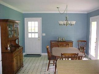 The paneling has been painted, a new light is installed, the ceiling is now smooth and there is new crown molding and baseboards.